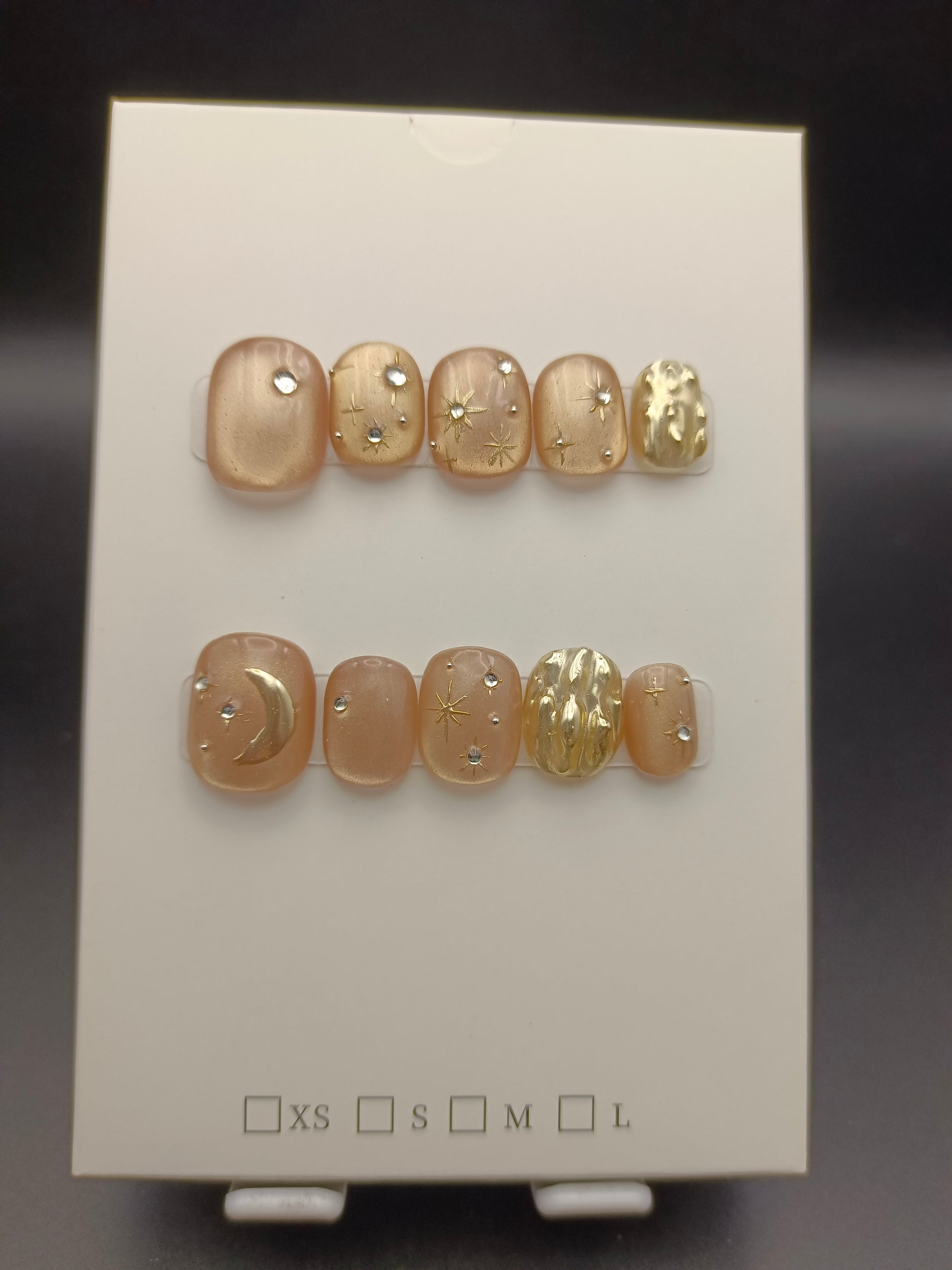 Achtung: Nach dem Abnehmen die Nägel sorgfältig sauber machen und die Kleberückstände beseitigen. In der vorgesehenen Aufbewahrungsbox sicher verwahren, damit sie für das nächste Anbringen bereit sind. Nicht zum Verzehr geeignet. Außerhalb der Reichweite von Kindern aufbewahren.